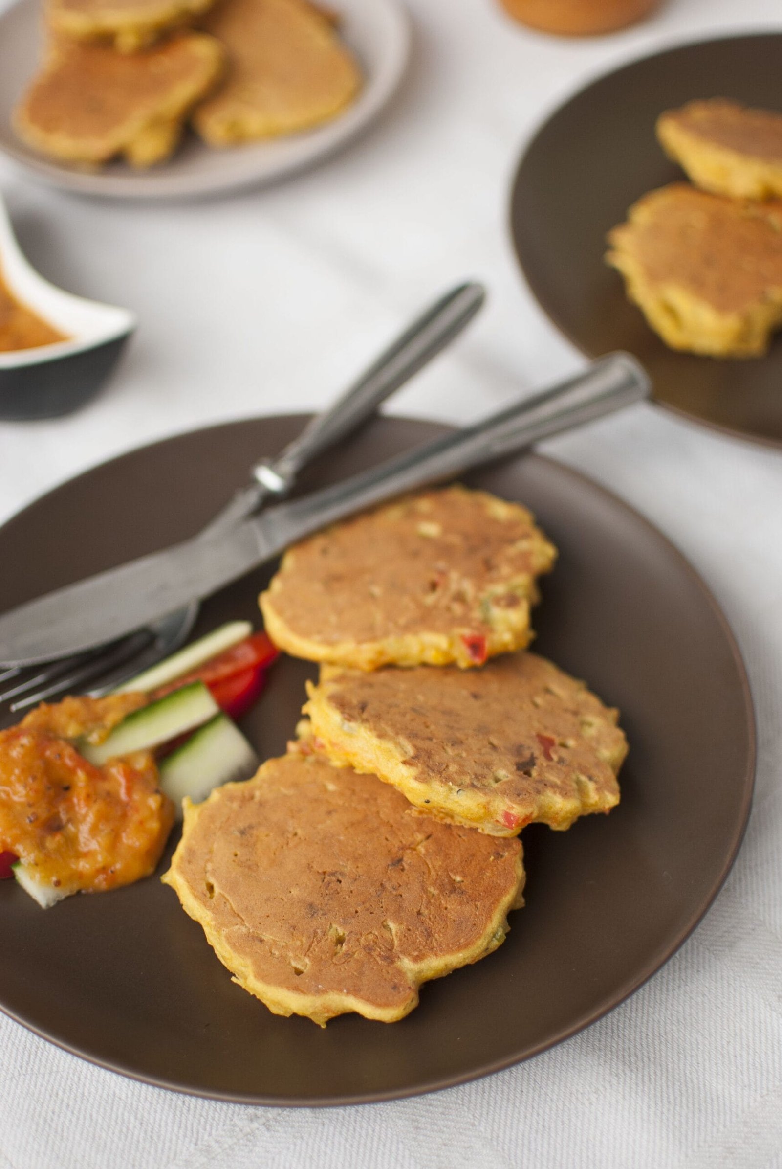Kokias daržoves naudoti priklauso nuo jūsų fantazijos, bet labai rekomenduojame dėti pakepintų morkų, salierų, paprikų, svogūnų ir tarkuotų bulvių. Tuomet blyneliai kvepės žirnių sriuba ir šiek tiek – bulviniais blynais. Tokį patiekalą labai skanu valgyti su kokiu nors gaiviu padažu – pavyzdžiui, mangų ir pomidorų, graikiškų dzadzikiu, saulėgrąžų grietine ir pan.